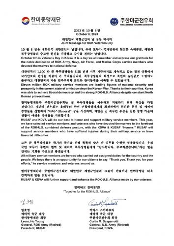 제23-1차 애틀랜타 한미동맹 컨퍼런스, 동맹 목소리 제고, 전우회 2.0 도약 계기 마련 재단과 전우회는 국가보훈부와 함께 10.6-8일 애틀랜타에서 한미동맹 컨퍼런스를 개최하여, 동맹 강화를 위한 다양한 방안을 논의하고 지역 내 한국기업과 주한미군 복무장병 간 네트워크 구축방안을 모색하였다. 또한 한국전 참전용사를 초청하여 참전용사들의 헌신을 이어가는 시간도 가졌다. 미 의회 코리아 코커스 공동의장 라파엘 워낙 상원의원과 조지아주 패트리샤 로스 보훈장관은 컨퍼런스 개최를 축하하고 한미 경제협력, 인적교류 등 동맹 협력이 모든 영역에서 확대되고 있다고 강조했다. 워낙 의원과 로스 장관은 주한미군 복무장병 예우 및 한미동맹 강화를 위한 적극적인 지원과 역할을 약속했다.