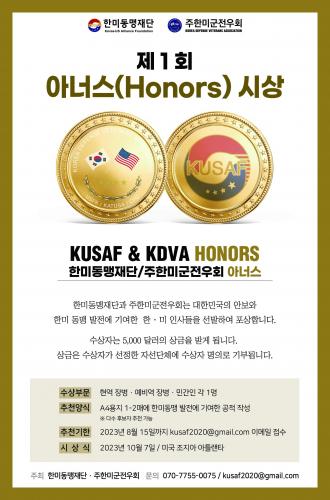 한미동맹재단과 주한미군전우회는 대한민국의 안보와 한미동맹 발전에 기여한 한미 인사들을 선발하여 포상합니다. 수상자는 5,000달러의 상금을 받게되며, 상금은 수상자가 선정한 자선단체에 수상자 명의로 기부됩니다. ※ 세부사항 포스터 참조