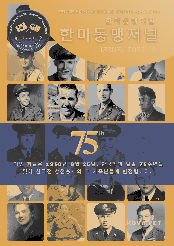 전우회는 6·25전쟁 발발 75주년을 기념하여 한미동맹저널 2025-2호를 발간하였다. 이번 저널은 참전용사의 회고를 중심으로 한미동맹의 과거, 현재, 그리고 미래를 조망 하고 있다. 전쟁 중 우정을 나눈 미 참전용사와 하우스보이의 60년 만의 재회, 해병대 훈련소 체험기 등은 동맹의 인간적인 면모와 가치를 생생히 보여준다. 또한, 북한의 핵 위협, 푸틴-김정은 간 협력, 한미 핵전략의 딜레마 등 주요 안보 이슈도 심도 있게 다루었다. 특히 ‘같이 갑시다’라는 구호가 외교·문화 영역으로 확산된 과정을 조명하며, 한미동맹이 군사적 협력을 넘어 자유민주주의 가치를 공유하는 관계임을 강조하고 있다.