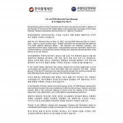 한미 현충일 추모 메시지