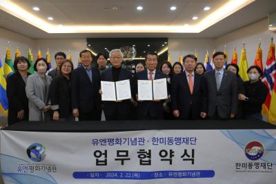 재단은 2.21일 부산 유엔평화기념관을 방문하고 향후 협력 확대를 위한 양해각서를 체결하였다. 재단과 기념관은 올 한해 다양한 한미동맹 행사를 같이 한다. v4.9일, 웨버 대령 3주기 추모행사, 파주 평화누리공원 v7.27일, 웨버 대령 유품 특별전시회, 부산 유엔평화기념관 v9.15일, 한미동맹 사진 전시회, 뉴욕 센트럴파크