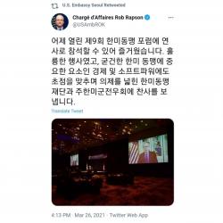 랩슨 주한미대사 대리, 제9회 한미동맹포럼 개최 감사
