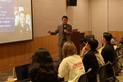 김승겸 의장은 8.23일 ‘우리 안보와 미래를 위한 준비’라는 주제로 강의했다. 김 대장은 한국이 주변 강대국에 둘러 싸여 있는 분단국가로서 핵위협에 직면해 있음을 지적하며, 한반도의 지정학적 환경에 많은 도전과 위협, 마찰이 상존하고 있다고 강조했다. 유스펙 학생들은 한반도를 둘러싼 복잡한 안보환경 및 미래 전략환경에 대해 깊이 이해하게 되었다고 소감을 밝혔다. ü북한 핵 위협에 대비하여 확장억제를 고도화하고 한국형 3축 체계를 조기에 확충해야 한다. ü주한미군 전력 및 한미 연합훈련, 한미 간 긴밀한 소통과 협의가 중요하다.