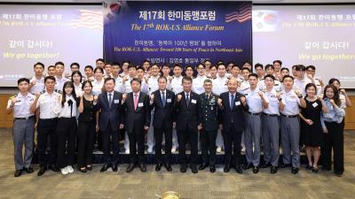 재단은 9.9일 주한미군, 육·해·공군 사관생도, 유스펙 학생 등 150여 명이 참석한 가운데 김영호 통일부 장관을 초청해 제17회 한미동맹포럼을 개최했다. 김영호 통일부장관 ☞ 지난 70년 동안 한미 동맹과 주한미군은 지역 평화 유지 및 대한민국의 정치적, 경제적 발전에 기여해 왔다. 전쟁 이후 동북아 평화가 유지된 것은 동맹의 지속적인 협력과 효과적인 대응의 결과다. 한미동맹을 더욱 강화하고 발전시켜 자유 평화 통일의 비전을 추진한다면, 동북아 지역도 70년 평화를 넘어 100년의 평화로 나가게 될 것이다. 통일정책 ☞ 8.15 통일 독트린은 한반도의 평화적 통일을 목표로 하며, 남북한 모두가 자유와 인권을 누려야 한다는 것을 강조한다. [임호영 회장] 재단과 전우회는 미국 주류사회에서 동맹의 가치를 높이고 한미동맹을 더욱 굳건하게 하고 있다. [스카파로티 회장] 한국과 미국, 재단과 전우회의 협력을 돌아보면, "백지장도 맞들면 낫다"는 한국 속담이 떠오른다. 우리는 미래 세대를 위한 평화를 위해 계속 협력해야 한다. [강신철 대장] 한미동맹은 틈을 보여서는 안 된다. 한미동맹은 비관론자처럼 철저히 대비하고, 낙관론자처럼 희망을 가져야 한다.